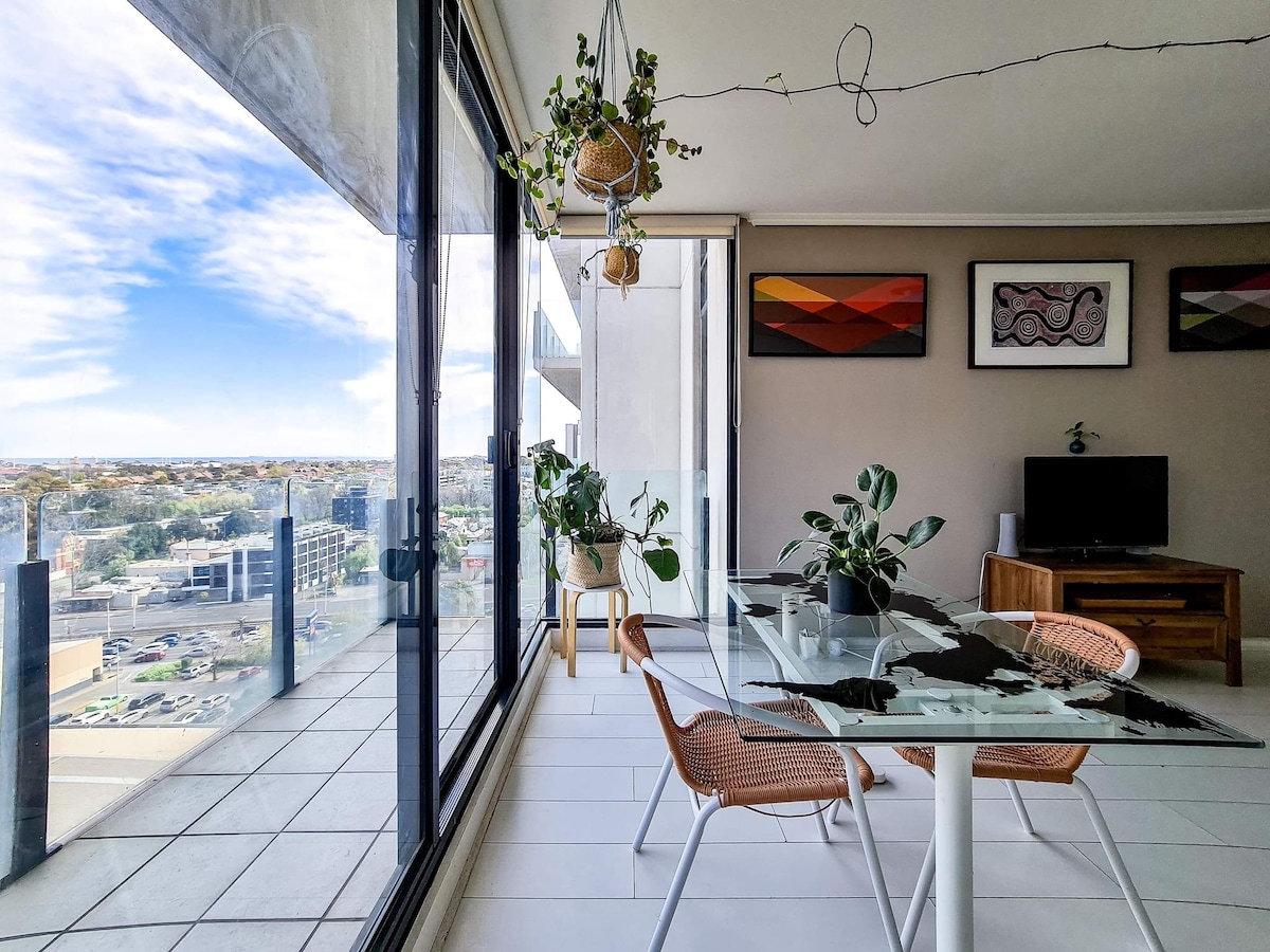 Live it up in Melbourne's heart! 1 bedroom apartment with stunning ocean views near CBD. Immerse yourself in Melbourne's vibrant culture. Our apartment is close to the CBD, trams (5-minute stop!), and boasts stunning ocean views from the balcony. Catch a concert, the Grand Prix, or the AO. Relax by the indoor pool or tennis courts. A indoor parking included. Take a stroll through the Royal Botanic Gardens, just a 5-minute walk away. Unwind in the comfort of our practical and spacious apartment.
