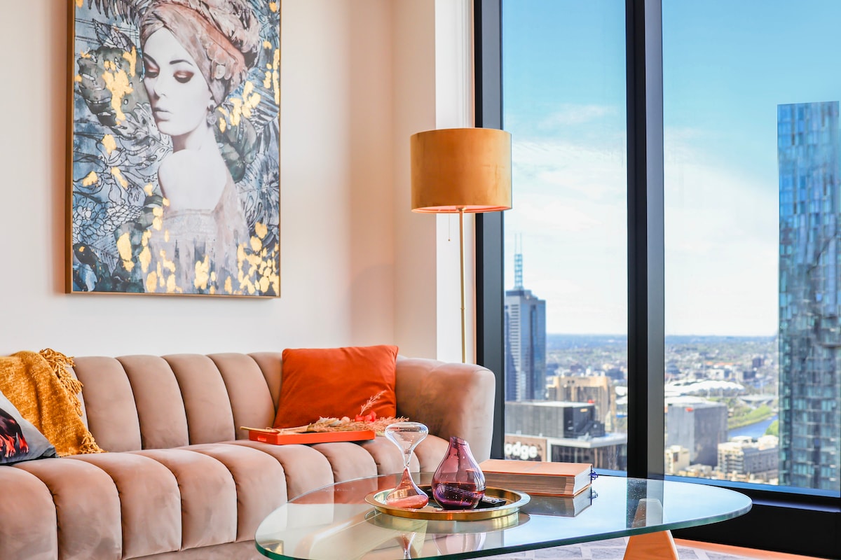 Consistently rated one of Melbourne's finest for nearly a decade. Our 10th-floor, 2-bed/2-bath South Yarra apartment features high ceilings and premium finishes throughout—details that make Airbnb special. We host Australian Open pros, business people, academics, families & pets from around the world. Free parking (on-site), keyless check-in, pool, spa, sauna and BBQ terrace. Crib available. Relax with 4K Apple TV, Sonos and 100MB/s WiFi. Steps from Chapel St—Melbourne's best dining precinct
