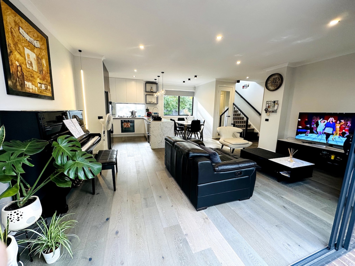 Three-story modern townhouse located in a quiet area close to all the best entertainment and experiences Melbourne has to offer. The property is high quality, comfortable, spacious, light-filled and extremely well equipped with all the essentials to make your stay relaxing, convenient and enjoyable. 5 min walk to tram stop then a short trip to the beach or city. Parks, markets, restaurants, cafes, bars, Crown Casino, South Wharf and popular Bay St are all within a 15-20 min walk.