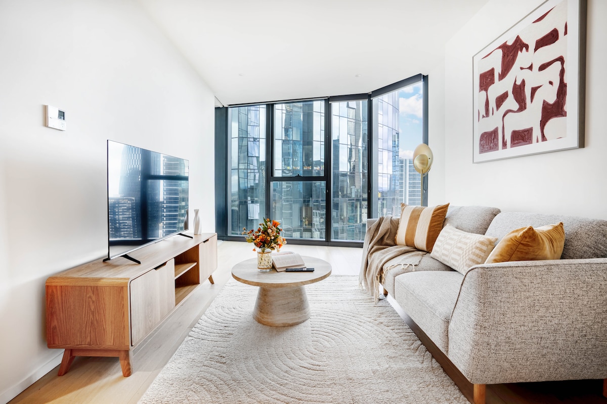 Situated on the top floor of one of Melbourne's best apartment complex's, this well designed apartment has uninterrupted panoramic views spanning from the ocean to the beautiful Docklands. With floor-to-ceiling windows in the bedroom, you'll be waking up to one of Melbourne's best views. Situated in a convenient location, this apartment is a 3 minute walking distance to Melbourne's main train station, Southern Cross Station, along with retail services and grocery shopping needs.