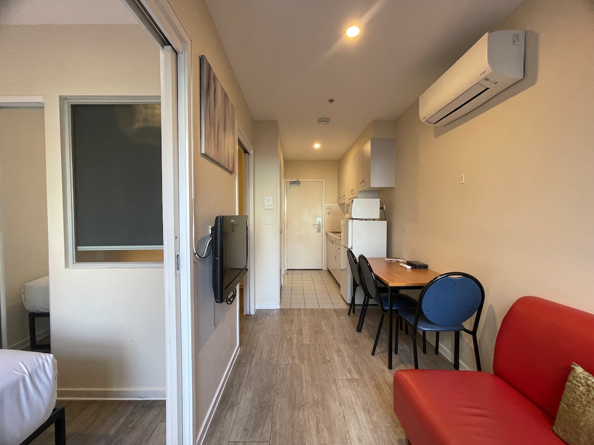 This fully furnished studio apartment is ideal for students, corporate travellers, or solo guests. It features a comfortable double bed, a well-equipped kitchenette with essential appliances, and a private bathroom with modern amenities. Enjoy free Wi-Fi, air conditioning, and a flat-screen TV. Guests have access to on-site facilities. Conveniently located with secure parking, 24/7 reception, and security for a stress-free stay.