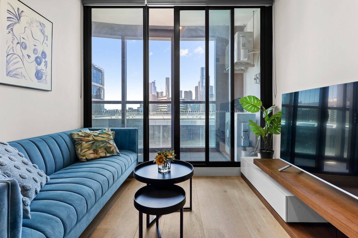 墨尔本中央商务区时尚舒适的1卧室公寓|泳池/健身房/桑拿