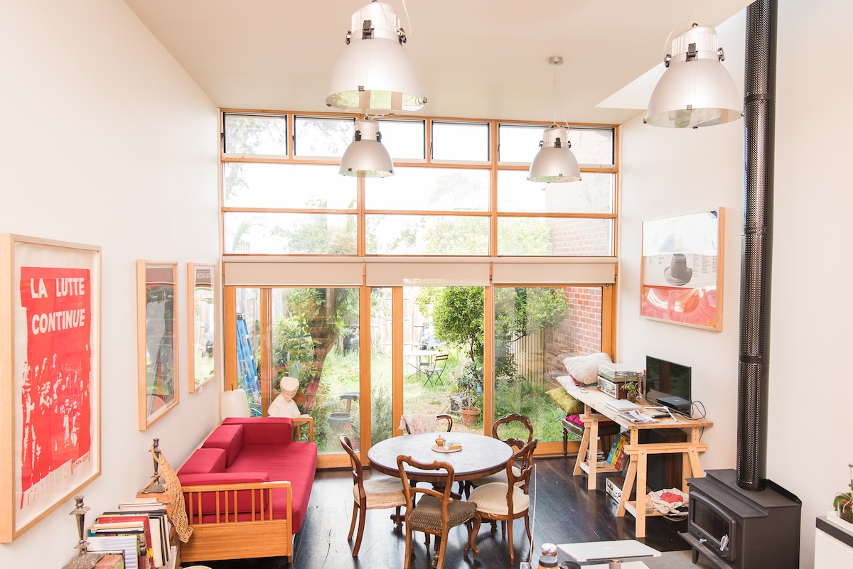 This 100 year old workers cottage is all about bespoke interiors The walls and shelves filled with gorgeous art work, the home has specially sourced vintage pieces scattered everywhere, the beds are filled with luxurious linens and the lounge has a 3 seater couch you may never want to get up from. Centrally located, across the road from the South Melbourne Markets, walking distance to the Albert Park Lake and a quick tram trip to the CBD. Please note- no TV, so bring devices if needed.