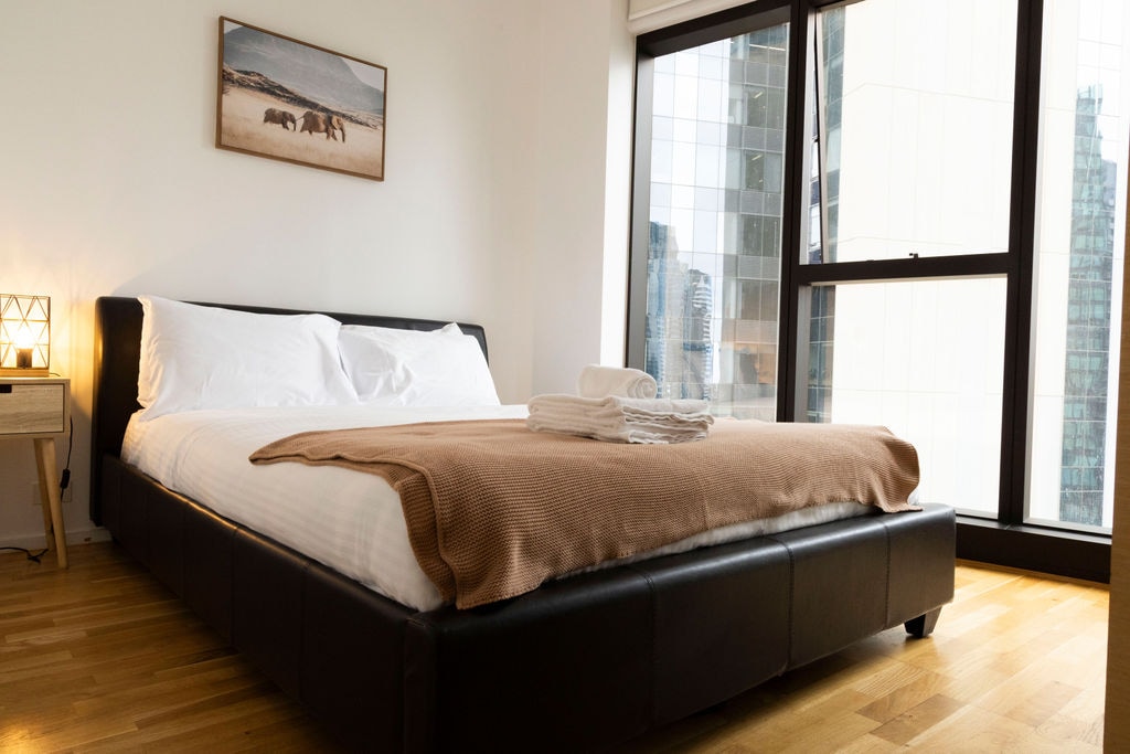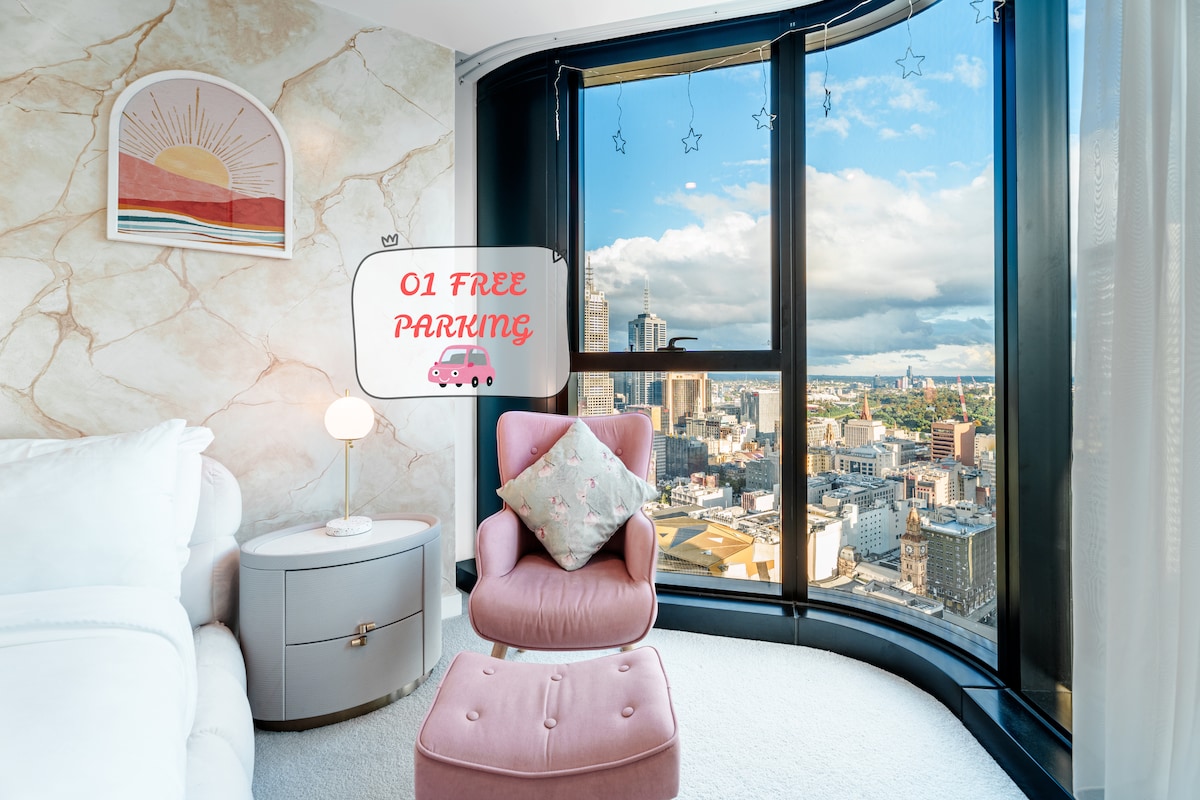 Set on Level 43 🌆, this cozy studio sits in one of Melbourne’s most convenient locations. Designed the way you’d want your own home: welcoming, practical, and relaxing. It includes essentials, entertainment options, skyline views from the bed, and access to the gym, pool, and sauna. Transport, cafés, restaurants, a shopping mall, and the SkyBus to Melbourne Airport are right outside, with parking choices if you’re driving. Walk to Melbourne icons like Marvel Stadium, Crown Casino and more.