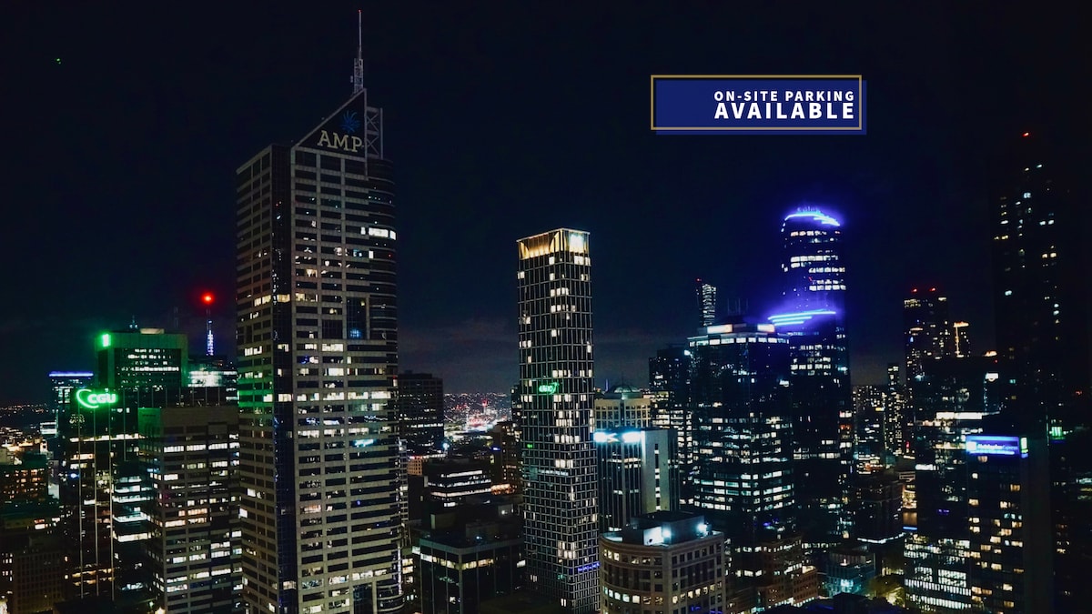 Be welcomed in the highly secure and one of the most prestigious residential only buildings in Melbourne- Prima Pearl. Arrive in the sky high apartment on level 58 and admire sweeping city views through floor-to-ceiling windows. Enjoy the vista while lounging on a roomy sectional sofa and lying in bed. Prepare meals in a sleek kitchen and complete your laundry with a fully functional washer and separate dryer. Car parking is available at a nighty charge of $20 a night .
