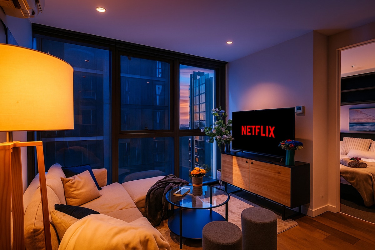 Don’t just stay — reconnect, reflect, and elevate your everyday. Perched 38 floors above Melbourne's tallest residential tower in Australia 108, Amor Condo is a luxury lifestyle retreat with sweeping bay and city views. Wake to sunrise, wind down with sunset — all from your private balcony. Perfect for romantic escapes or focused work trips. What our guests love: • Sunrise & sunset balcony views • Walk to Crown, NGV & dining • Pool & gym access (T&Cs) • Private workspace with skyline views