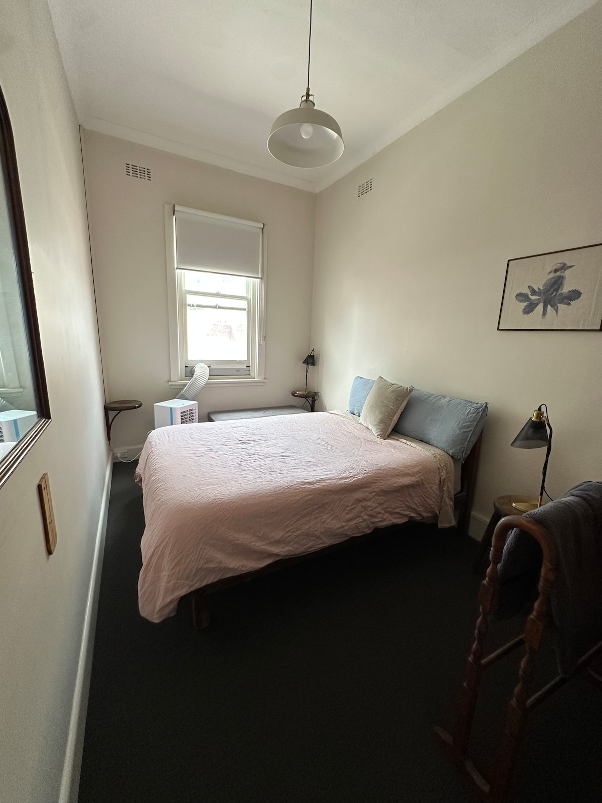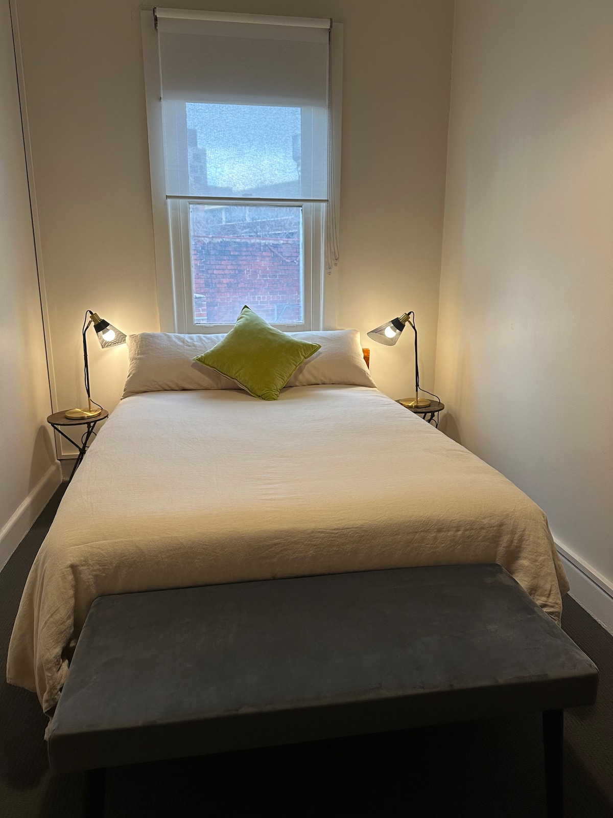 Cosy light-filled room with ensuite bathroom. The room is located upstairs, in a secure, private residential area of the pub. The room is equipped with all the essentials including: double bed, mini-fridge, kettle, toaster and tv. It is located just a short stroll from Lygon St and close to cafes, shops, and public transport. As the room is located above a pub and on the city fringe, there may be some noise at night, please keep this in mind when booking.