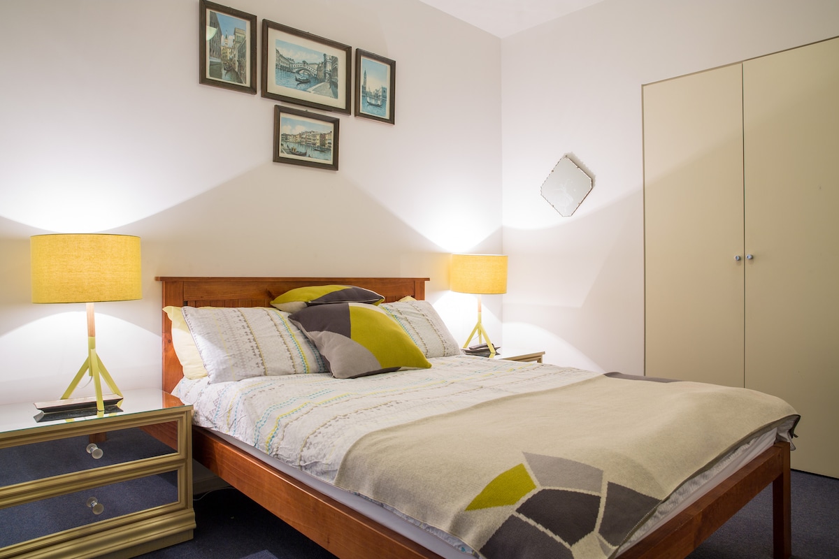 This lovely chic studio is perfect for a couple or single or twin share in a nook; walking distance (or tram) to the best parts of Melbourne CBD. Booking length, at a min. six days for a deeper stay, so easy that you won't want to be anywhere else. A fully stocked kitchen with quality implements; eat in/ out and eat well. Excellent fast WiFi. Features: comfy queen-size bed (wool futon with latex overlay), stocked kitchen, on-site laundry, air-con, gym and a yoga mat. Car-parking by arrangmrnt.