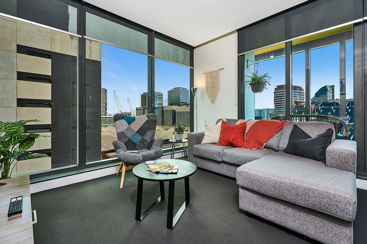 Enjoy a clean, relaxed experience at this centrally located place. Try the top floor! In Melbourne CBD this place really stands out. Phenomenal sunsets! Unencumbered views to the bay, rivers, Docklands, WestGate & Bolte Bridges, distant hills, city lights. Convenient. Walk to Crown, ConventionC, Marvel Stadium, Southern Cross Station, il Mercato Centrale. Great amenities: Pool/spa/sauna/gym. 1x Quality queen bed + Quality 2x sofa beds, linen, Hot shower, Kitchen, Ergonomic Desk, AppleTV