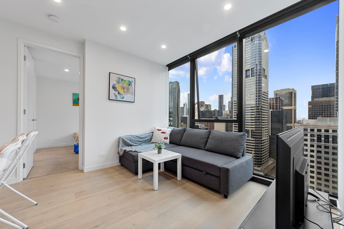 Welcome to our stunning, newly decorated apt on the level 57, offering breathtaking views and an abundance of natural light. Unwind in this tranquil, chic space. Conveniently placed in a free tram zone, tram station is right at your doorstep. Melbourne's iconic QV Market is just a stone's throw away. RMIT is a short 5minute walk, and Melbourne University is a mere 10minute stroll. This prime location is surrounded by Melbourne's finest specialty cafes & restaurants. An ideal urban oasis awaits!🤩