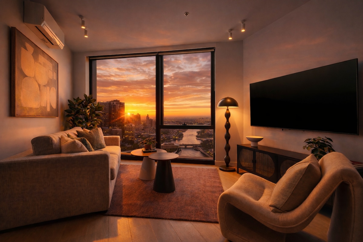 This bright and stylish apartment offers comfort, convenience, and stunning city views. The spacious living area features floor-to-ceiling windows. Relax on the cozy sofa,dine in the modern space equipped with a fully fitted kitchen. Two beautifully decorated bedrooms with premium bedding ensure a restful stay. Perfectly located, you’re minutes away from Southern Cross Station, Flagstaff Gardens, and Melbourne’s vibrant shopping and dining scene.