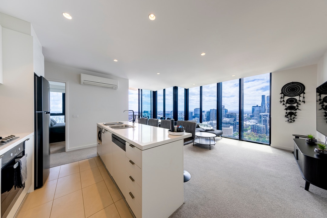 Overlooking Yarra River and Melbourne Exhibition and Convention Centre, this spacious two-bedroom, two-bathroom apartment provides stunning views of Melbourne. A fully equipped kitchen, formal dining area and comfortable lounge, provides the ultimate comfort for your Melbourne stay. Located close to Crown, South Melbourne Market and much more. With trams located at the doorstep, easy access to restaurants, theatres and all of Melbourne's iconic sporting arenas is easy.
