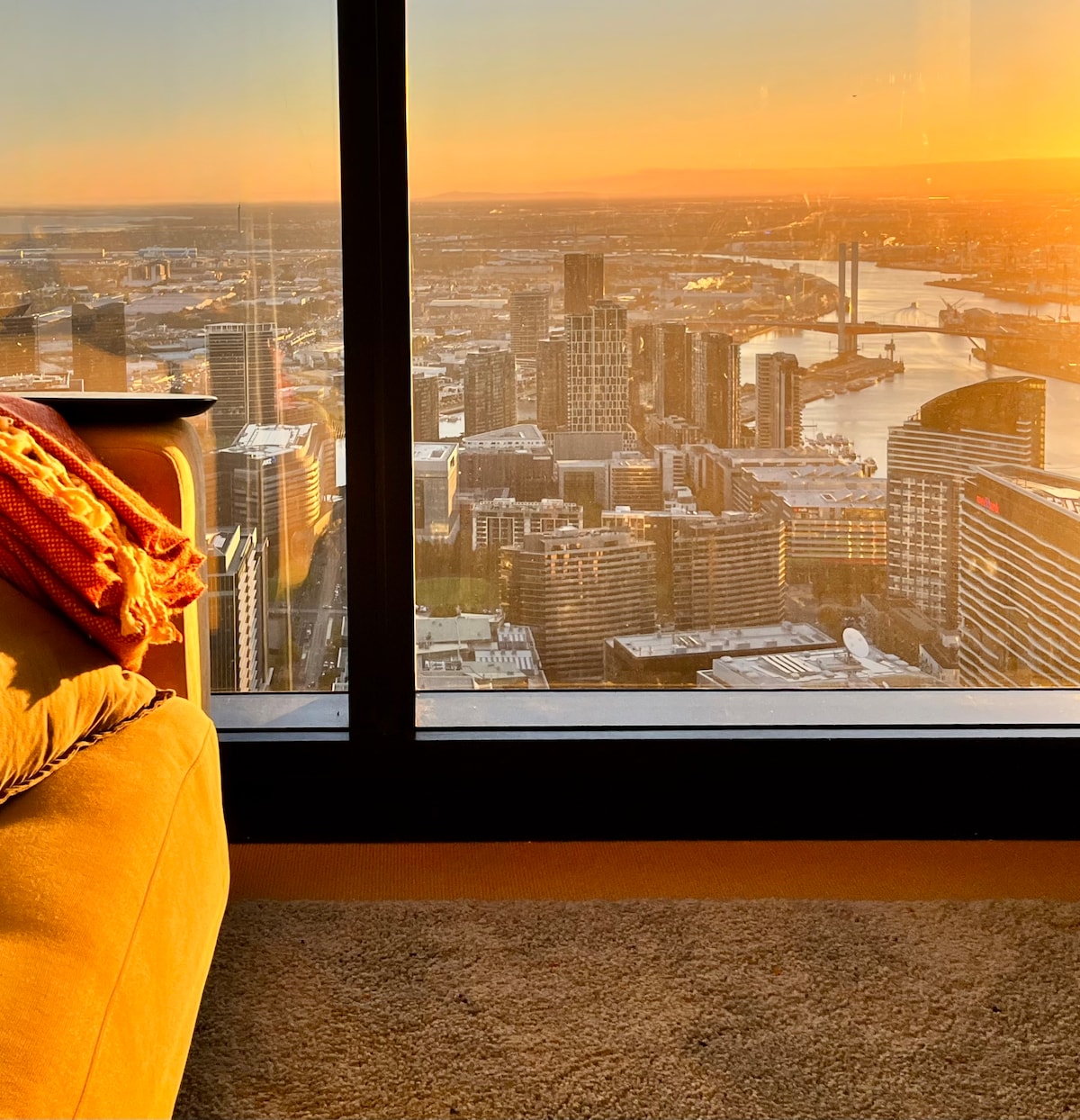 Enjoy a clean, relaxed experience at this centrally located place. Try the top floor! In Melbourne CBD this place really stands out. Phenomenal sunsets! Unencumbered views to the bay, rivers, Docklands, WestGate & Bolte Bridges, distant hills, city lights. Convenient. Walk to Crown, ConventionC, Marvel Stadium, Southern Cross Station, il Mercato Centrale. Great amenities: Pool/spa/sauna/gym. 1x Quality queen bed + Quality 2x sofa beds, linen, Hot shower, Kitchen, Ergonomic Desk, AppleTV