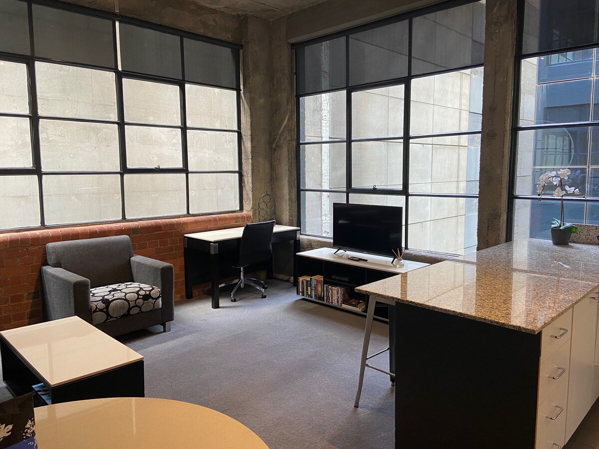 Providing one bedroom accommodation this warehouse apartment has expansive windows and 3 metre high exposed concrete ceilings creating that true "Manhattan Apartment" feel. The layout is spacious for a one bedroom apartment with a bathroom (with shower over bath and laundry facilities), bedroom with built in wardrobe and King size bed, and kitchen/living room. Located in the Paris End of Melbourne the best that Melbourne has to offer is at your finger tips.