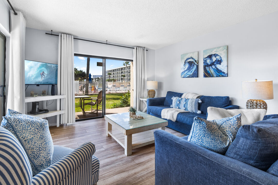 Steps from the sand! Upscale and spacious 1 bedroom, 1 bath suite. Breathtaking ocean views from every angle including triple glass slider, balcony, and oversized bedroom windows! See and feel rocket launches from the private balcony. Perfect for aquatic adventurers or close-knit friends. Tastefully appointed and newly renovated, expect an idyllic location for on-the-water fun with luxury for up to 4 guests Near Disney/Orlando Airport, Kennedy Space Center, Port Canaveral, Cocoa,Melbourne
