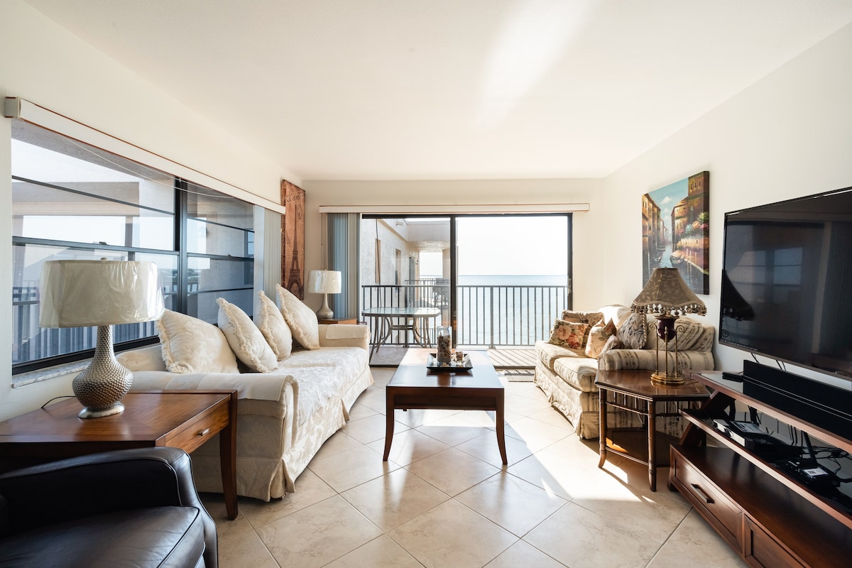 2 bedrooms each with a queen size memory foam mattress and a fold out couch in the living room. 3 smart TVs and high speed internet are included. Sunsets from the sun room, coffee on our private dock, daily dolphin sightings. The river view retreat is located directly above the garage (1 flight of stairs to enter). 15 miles to cruise ships & NASA/17 miles to cocoa beach. NO PARTIES! Additional guests allowed with prior approval. Hosts live on site. Free parking on site for 2 cars.