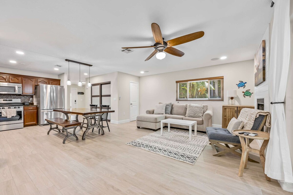 Welcome to our coastal oasis! With plenty of space for a large group, this newly renovated townhome in Cape Canaveral offers a serene and private retreat for families, friends, or couples. Featuring 4 bedrooms and 4 baths, it comfortably accommodates up to 10 guests. The home boasts chic beach-inspired décor and is fully equipped with all the essentials for both your stay and the beach. Just steps from the shore, you'll be perfectly situated to enjoy all the attractions of the Space Coast.