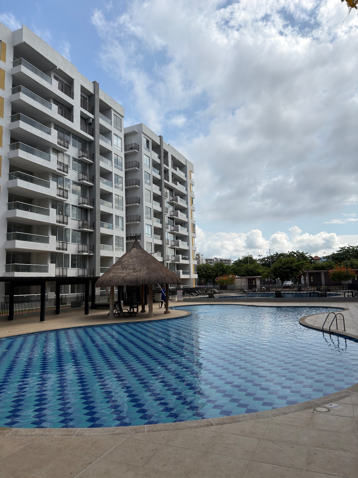 Moderno apartamento de 72 mts cuadrados con balcón en piso 7 y vista a la piscina, ubicado en Girardot, en un lugar privilegiado, rodeado de montañas y vegetación, cerca de los condominios de la región, a 1.500 mts del Estadio de Futbol y Coliseo, a tres minutos en carro de la nueva Tienda Olímpica y almacén Colsubsidio y Ara, moderno conjunto cerrado con ascensor, vigilancia privada las 24 horas, parques infantiles, amplias zonas verdes, mini market, parqueadero privado y servicio de piscinas.