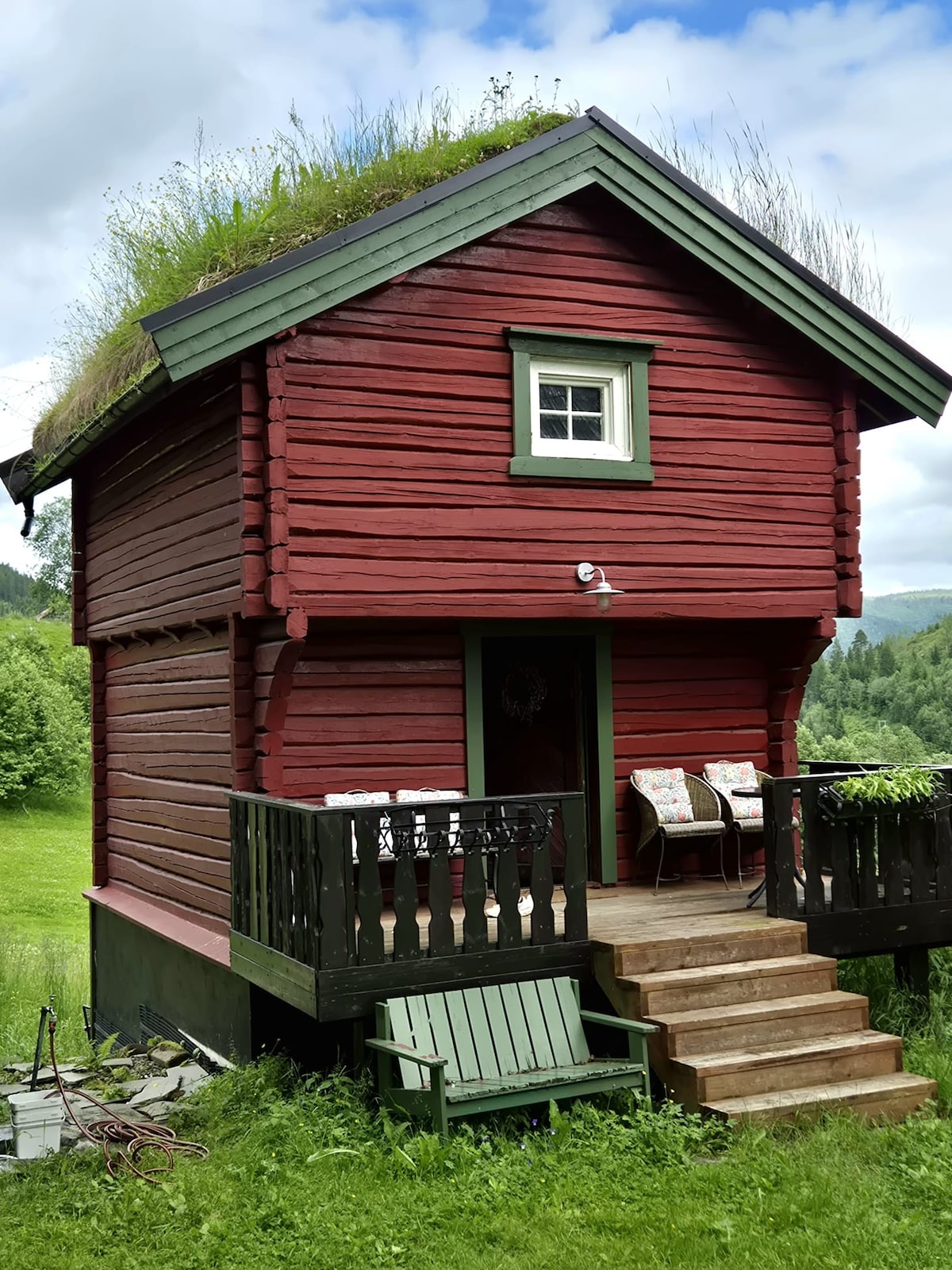 Our traditional cottage with gras roof has all modern facilities with kitchen and bathroom in the new basement. Scenic views of river valley. Located on a farm with lots of animals: sheep, horses, cats, hens, rabbits and a peacock. Great hiking and fishing! The cottage is in three stories; bedrooms on the top floor and bathroom/kitchen in the basement, with stairs in between. Not suitable for everyone, but for those who dont mind stairs the cottage offers a cozy and charming atmosphere!