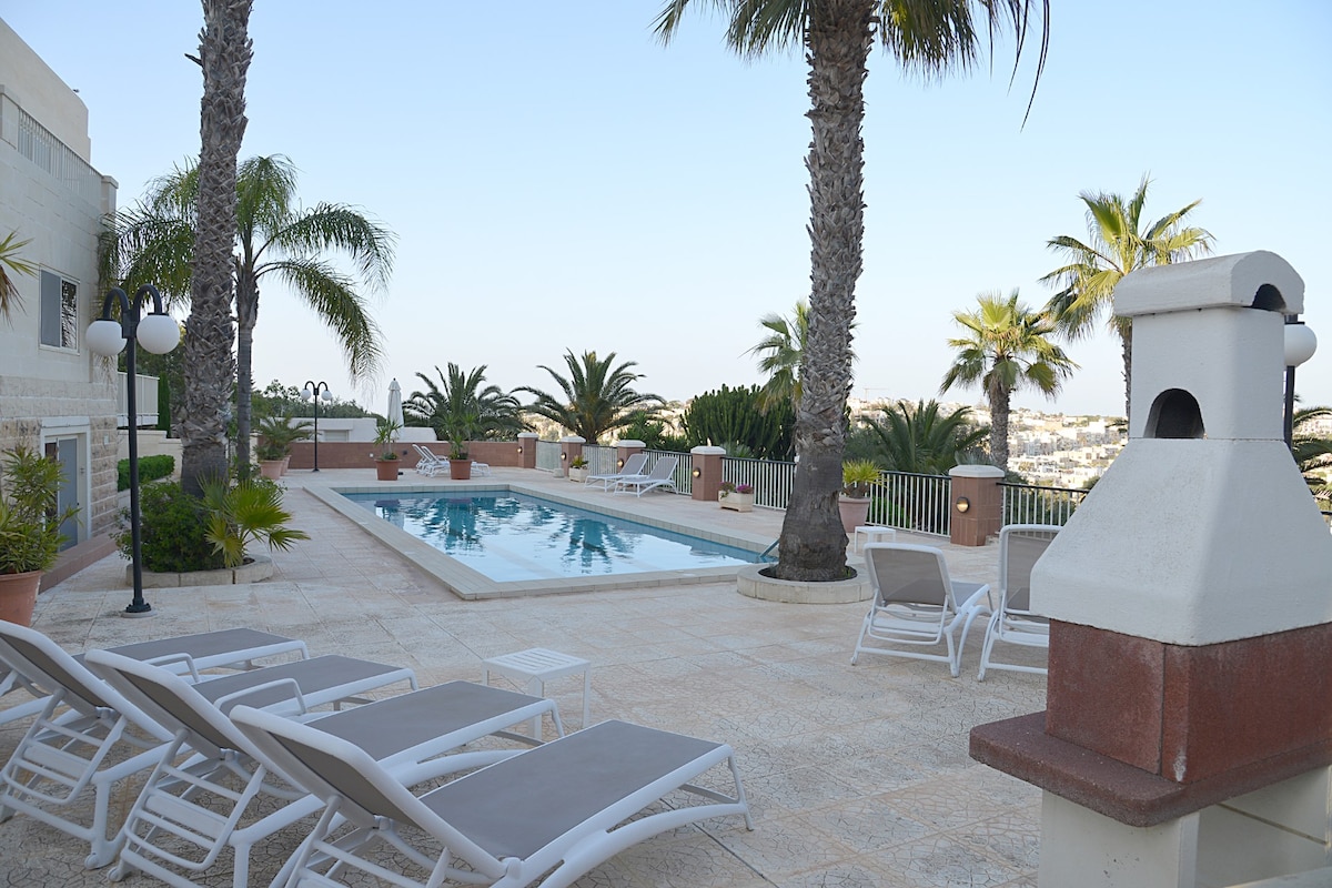 Relax with the whole family at this peaceful place to stay. Experience Villa Lyss Apartment, nestled in the serene Mellieha village of Northern Malta. Exuding style, this 2-bedroom haven is housed within an exclusive hilltop villa. Dive into the expansive 45' x 15' pool, fringed by verdant palms on a sun-soaked deck, creating an atmosphere of pure relaxation. Your idyllic retreat awaits your arrival