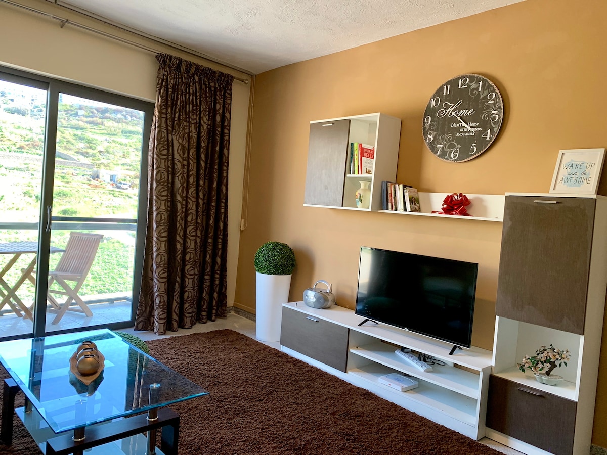 No hills no walks to the seaside (only 5 mins). Fully airconditioned 100sq metres apartment with new Lux Bathrooms. Views of Mellieha valley and sanctuary. Highest speed internet; beach with ferries to amazing spots; all tv channels including sports channels; walks along Malta's most beautiful coastlines. Parking is not a problem with us. Guests use the garage served with lift. The bus stop is less than 100m away with connections to all the island. Restaurants and bars are along the same road.