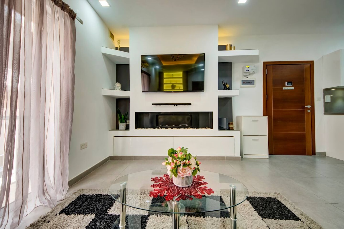 Beautiful Recently Renovated 1-bedroom Traditional Lime Stone Open Space Apartment with Modern Conveniences in Sliema with Valletta View and distant Sea View. Conveniently located on the border of Sliema/St. Julians/Gzira. Short walking distance to many bars, restaurants and beaches. Romantic bedroom with Super King size bed, huge living room with unfold-able Queen-size sofa. Working Fireplace to turn cooler months into cozy months, Rooftop hangout in summer!