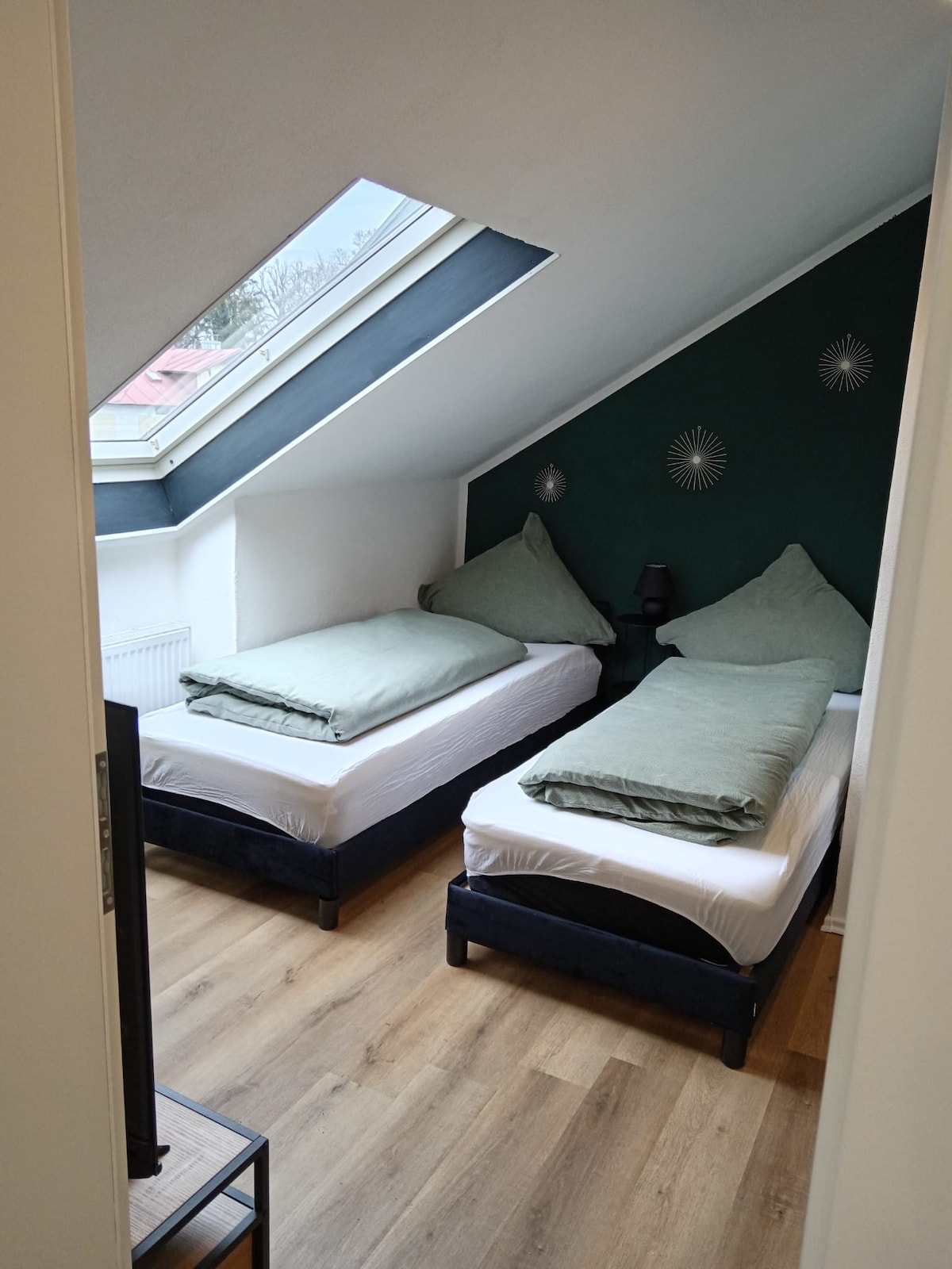 Unser Appartement ist nahe dem Stadtzentrum (1,2 km), Bahnhof (850 m), Flughafen (3,3 km). Du brauchst kein Auto, Supermarkt, Bäckerei, Restaurant in der Nachbarschaft, Stadtzentrum (Marktplatz) zu Fuß in 15 Minuten erreichbar. Du wirst Dich wie Zuhause fühlen. Du wohnst klimaneutral. Unsere Unterkunft(zirka 41 Quadratmeter) ist gut für Paare, Allein- und Geschäftsreisende. Umfangreiche Ausstattung vorhanden. Der Garten ist auch für Gäste offen, aber aktuell eingeschränkt nutzbar.