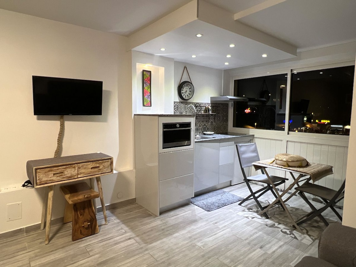 T2, tout confort. Grande pièce de vie agréable, canapé convertible. Cuisine équipée donnant sur la terrasse. Salle de douche (cabine multi-jets). Chambre climatisée, placard mural. Loggia (espace de rangement bagages, machine à laver, table & fer à repasser, Chauffe-eau thermodynamique). Terrasse aménagée.