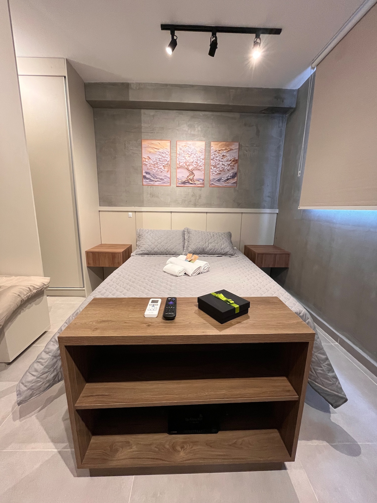 Este espaço está entre os 5% melhores do Airbnb, com avaliações impecáveis dos hóspedes. Ideal para quem busca conforto, praticidade e uma experiência moderna na cidade. Desfrute de um flat moderno, funcional e extremamente confortável, perfeito tanto para lazer quanto para trabalho. Com internet ultra rápida de 500MB, você pode trabalhar, fazer reuniões ou assistir seus conteúdos sem qualquer preocupação. O ambiente foi pensado para proporcionar uma estadia leve, prática e acolhedora.