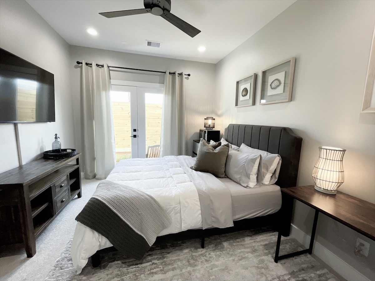 Enjoy a stylish experience at this centrally located inner loop contemporary guest suite! We completed an entire renovation of this Airbnb unlike anything you've seen in Houston. It includes an upscale bedroom and bathroom with all the much-needed amenities. Family & Pet friendly with access to an Extra-Large backyard for your pets/kids to run around and enjoy just for YOU. Private. Relaxing Patio/Fire Pit Area. Great parking space. Easy access to I-10 and close to Houston neighbourhoods.