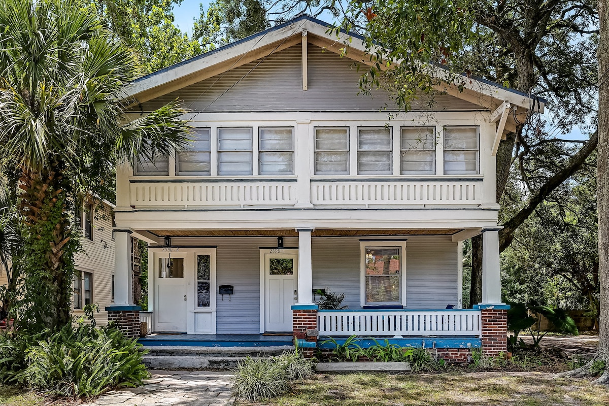 Enjoy the trendiness and fun of Riverside!! Located in the best area of the city - a quiet area but just minutes from Jacksonville's best restaurants, bars, shops, and nightlife. Unit recently renovated, 2 bedrooms, queen beds and TV in each one + sofa bed if needed. The apartment can accommodate 4 people and includes 1.5 bathrooms, fully equipped kitchen, laundry, living room, spacious dining room and a pleasantly furnished porch where you can relax having a cup of coffee. Come and enjoy it!!