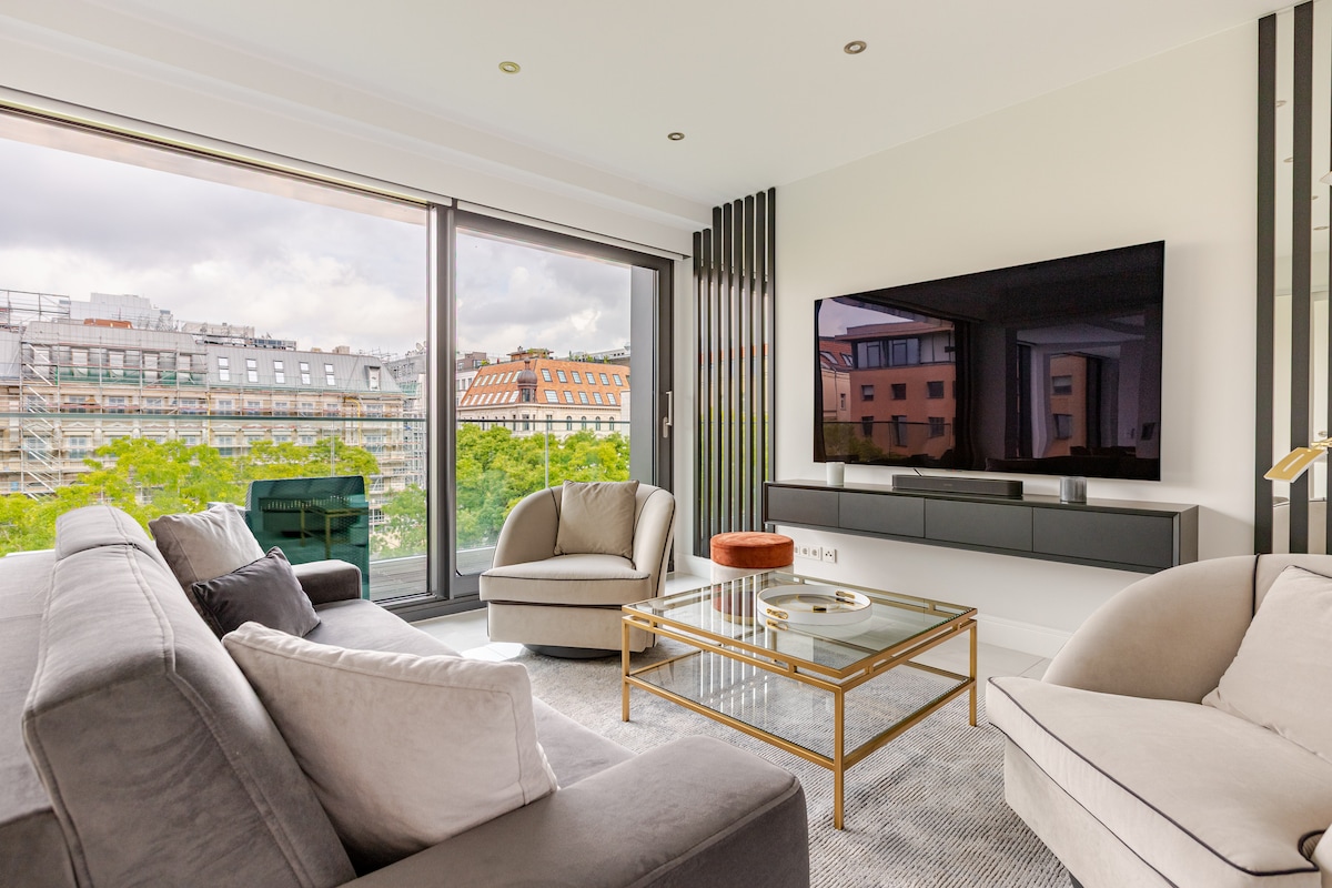 Unser Luxus Apartment mit 150 m2 bietet Ihnen einen außergewöhnlichen Aufenthalt in Berlin. Genießen Sie luxuriöse Wohnqualität in einem großzügigen Wohn- & Essbereich mit offener, voll ausgestatteter Küche mit MIELE Geräten. Das Apartment verfügt auch über eine Deckenkühlung, die im Sommer für ein angenehmes Klima sorgt. Die ist aber nicht so stark wie eine Klimaanlage.