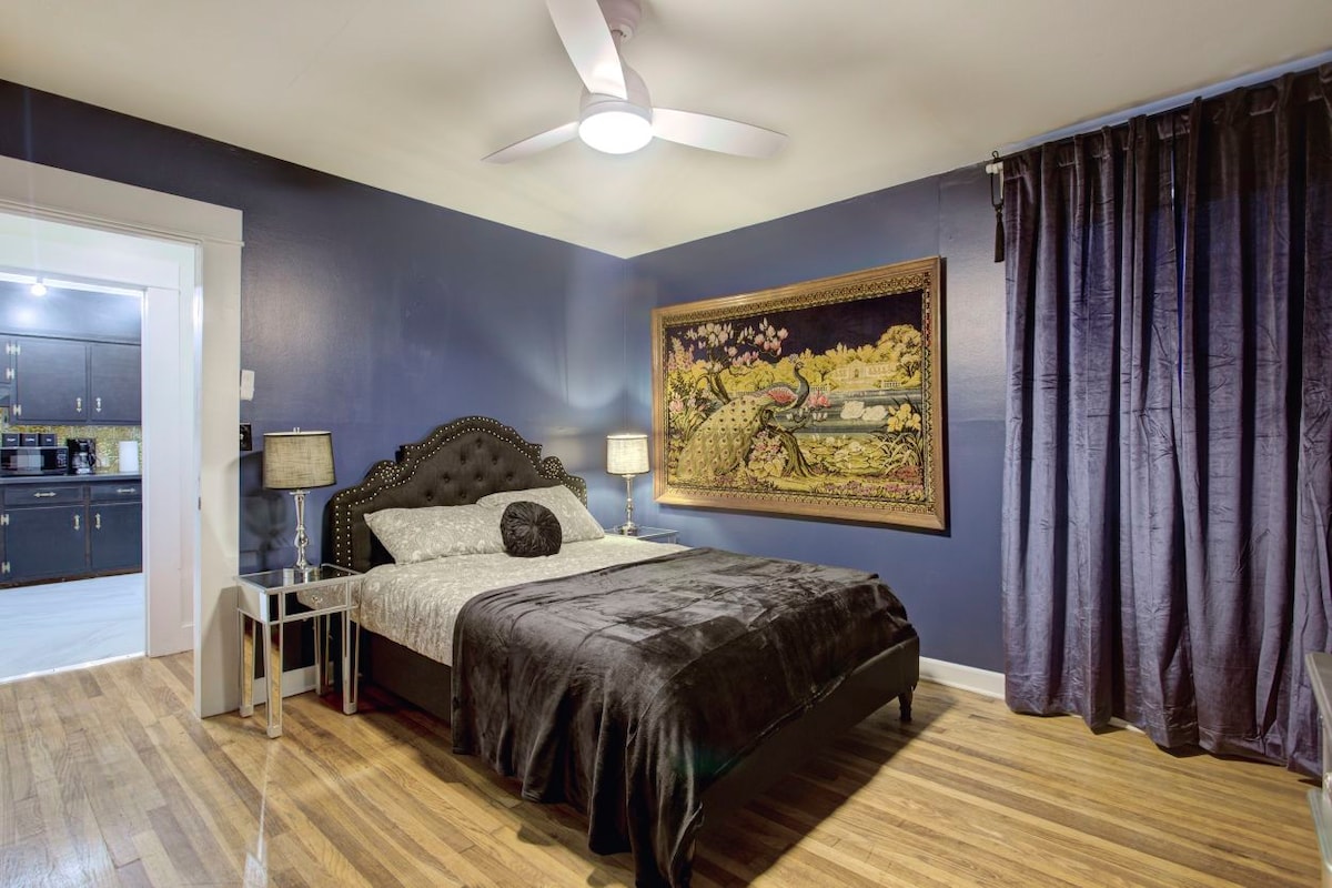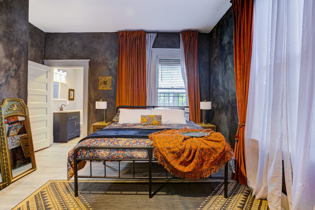 Immerse yourself in a picturesque oasis at the heart of downtown Memphis's Victorian Village. Experience an enchanting stay in a newly renovated king studio with modern decor, positioned in front of century-old villas. Revel in captivating views, a distinctive open layout, and insta-worthy decor. Enjoy a fully stocked kitchen, complete bathroom with a bathtub, and well-lit vanity. With central proximity to key attractions, free gated parking, and WiFi, your stay promises convenience and charm.