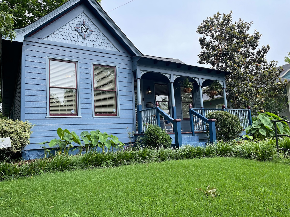 Whispering Oak was lovingly built in 1908 by the Mothershed family. It is adorned by a massive Oak tree that holds a swing. We have divided the house into two private apartments. Secret Hideaway is on the right. There are 3 spacious rooms. Living/dining with adjoining kitchenette, large bedroom with closet with en-suite luxurious bathroom with walk in shower. There a lovely front porch with swing that provides amazing sunset views and a beautiful backyard with large covered portico.