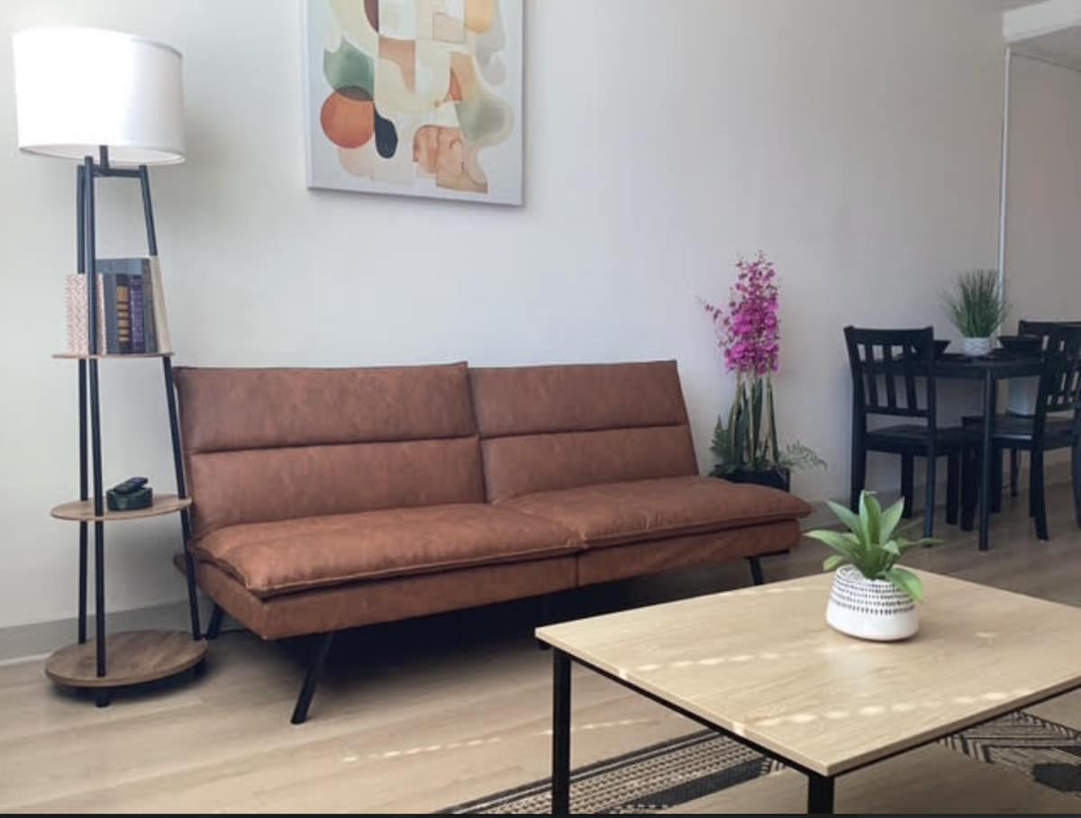 🛏️ Features Cozy 1BR with hardwood floors, large closet, and modern kitchen with stainless steel appliances. Fast Wi-Fi and climate control included. 🌇 Ambiance Bright and peaceful, filled with natural light—ideal for relaxing after exploring the city. 📍 Experience In vibrant Midtown near cafés, shops, and public transport. Pet-friendly with on-site laundry. Perfect for solo travelers or couples.