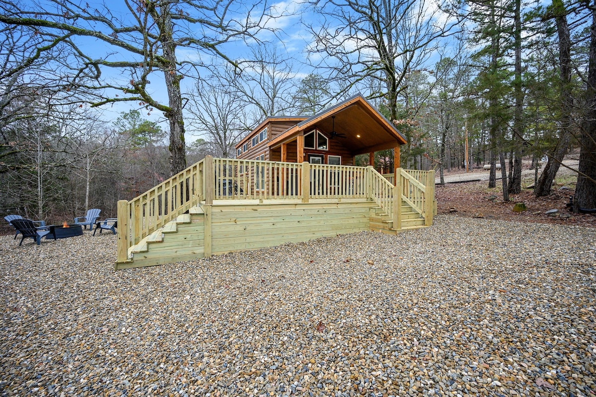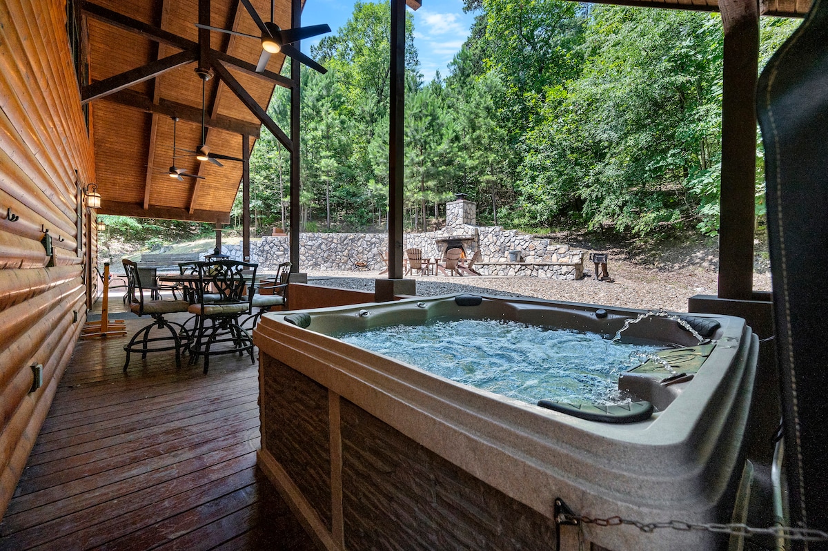 Wild Hare Escape: Dog-Friendly Fun! Unwind on the expansive wrap-around porch, savoring the crisp forest air and enjoying the local wildlife. Soothe your muscles in the hot tub after a day at Beavers Bend State Park (2.7mi away). Let nature's beauty surround you as you soak tired muscles and unwind completely. Gather 'round the fire pit under the stars. Share stories and create lasting memories with loved ones by the crackling flames. Book now and create memories at Wild Hare Lodge!
