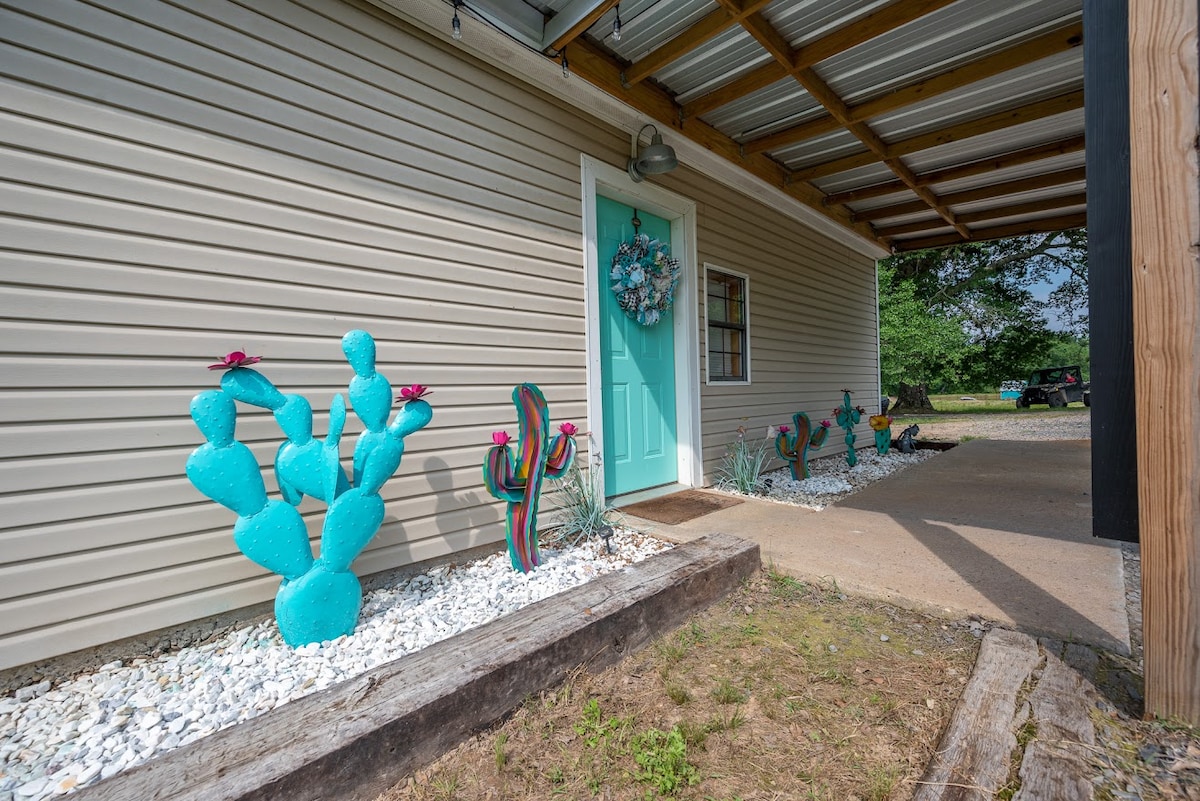 Take a moment to disconnect from the world and spend some time in a quiet rural area surrounded by the majestic Ouachita mountains and watch the sunset from the backyard. The D bar D farmhouse is a cozy, family-friendly house that is literally located on a family farm. Less than .25 miles down the road you will find an access point to enjoy the peaceful Ouachita river or drive a short 30 minutes to Wolf Pen Gap to ride ATVs or find Irons Fork Lake 6 miles away to take in nature and fish.