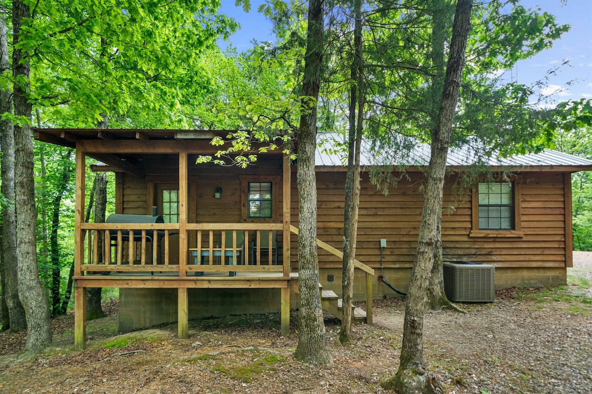 Enjoy the peace of this cozy cabin. The kitchen is fully stocked with cooking utensils, pots, pans, baking pans, dishes and serving utensils, coffee pot, toaster, microwave, crock pot, blender. We supply coffee etc., salt, pepper. Bath towels, wash clothes, toilet paper and soaps. The beds are made with fresh linens. The covered deck faces the woods where you can enjoy the sound of the river. Cook out on the grill and enjoy a fire in the firepit. Wash your treasures on the outside table.
