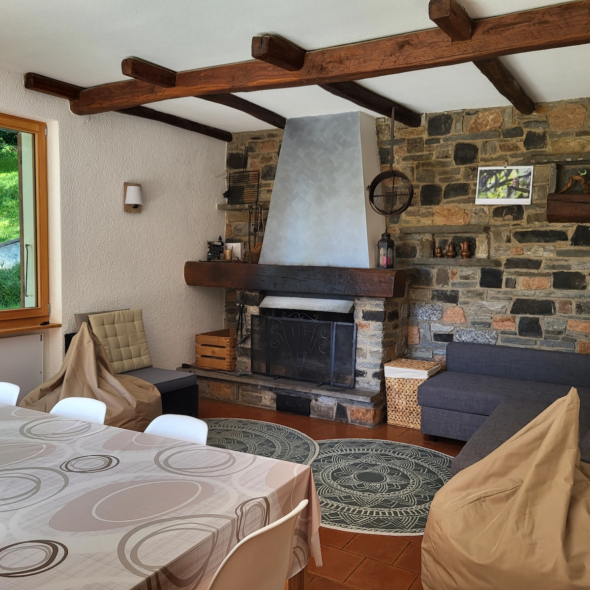 chalet in sasso e legno di pino, con comodo garage al coperto ad uso esclusivo e giardino privato. Incastonato nella montagna del tranquillo borgo storico di Ombriaco, sopra il lago di Como, da qui si ha una vista mozzafiato. Lo chalet ha tutto il necessario per rilassarvi, potrete leggere un libro della nostra collezione, bere un bicchiere di vino nel tavolino accanto al camino o in giardino con le sdraio. Bellano è collegata molto bene col battello per Varenna e gli altri borghi.