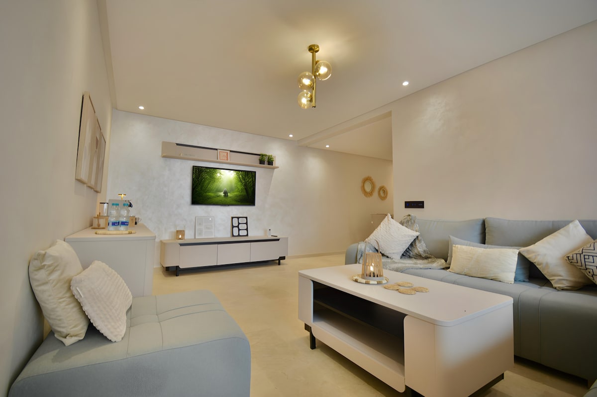 Appréciez le confort de ce magnifique appartement, au cœur de Marrakech dans le quartier de l’hivernage. Design, confort et ultra fonctionnel, avec en plus une piscine sur le toit, pour une expérience unique loin de votre quotidien. Cette perle d’appartement est l’endroit calme et agréable parfait pour vos vacances au cœur de Marrakech. Internet Fibre Optique 100 Mega A LOUER LES YEUX FERMÉS. NB: couple marocain ou mixte , devront présenter UN ACTE DE MARIAGE A LEUR ARRIVÉE