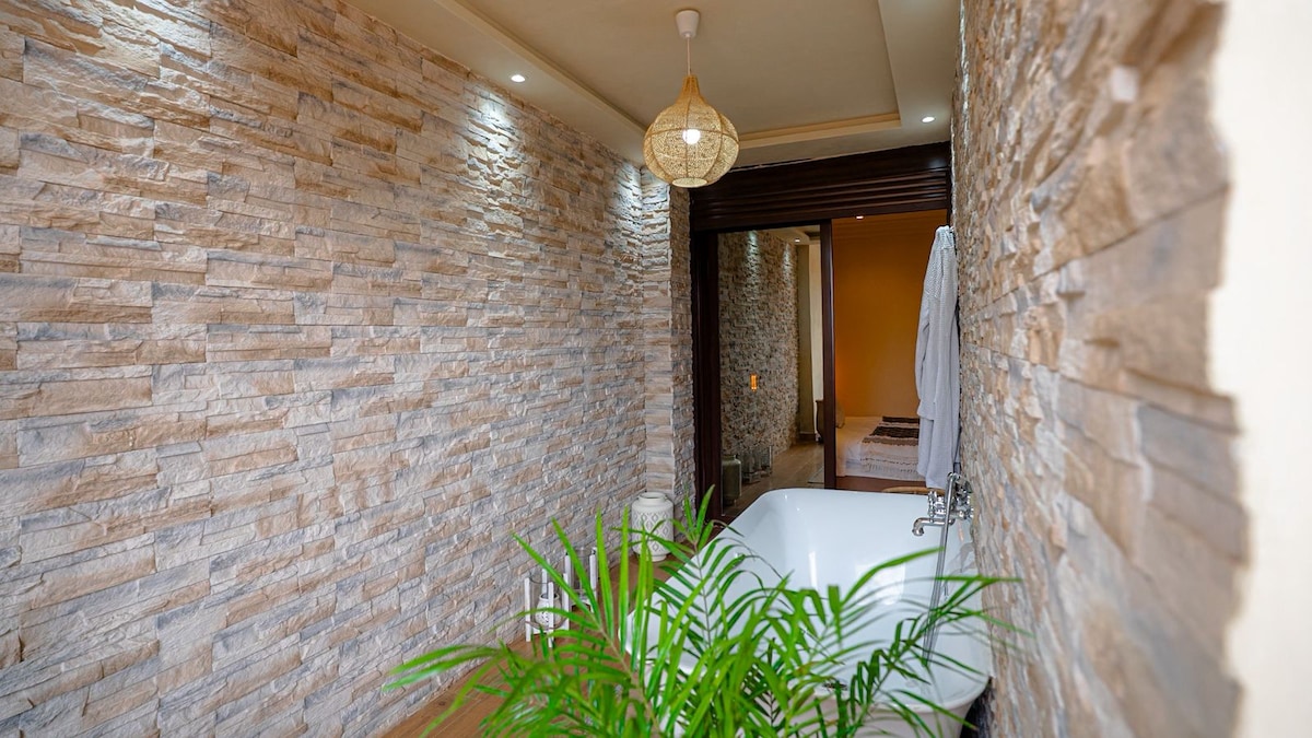Bienvenue dans votre oasis privée au cœur de Marrakech un studio à l’inspiration tropicale, conçu autour d’un concept pur et apaisant. Ici, chaque détail invite à la détente, entre nature, lumière et confort moderne •le petit bassin privé en plein air pour un moment de bien-être • Douche extérieure rafraîchissante, ambiance naturelle • Terrasse tropicale idéale pour se détendre ou partager un repas • Décoration soignée aux tons naturels et matériaux.