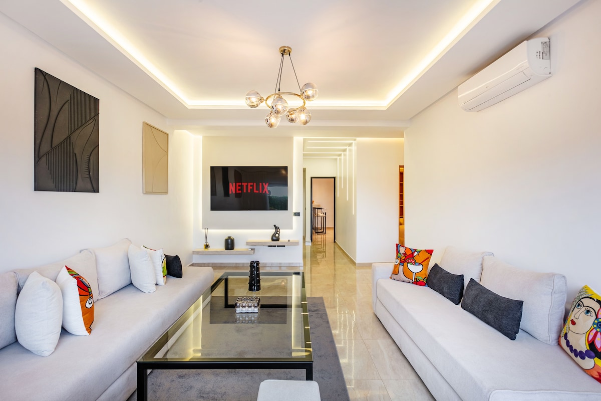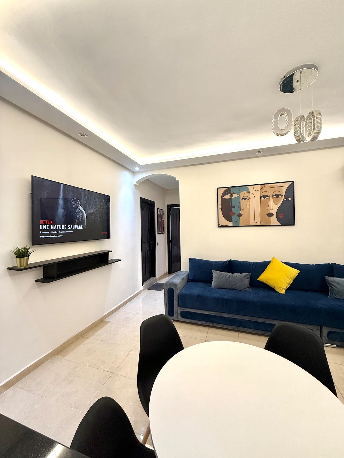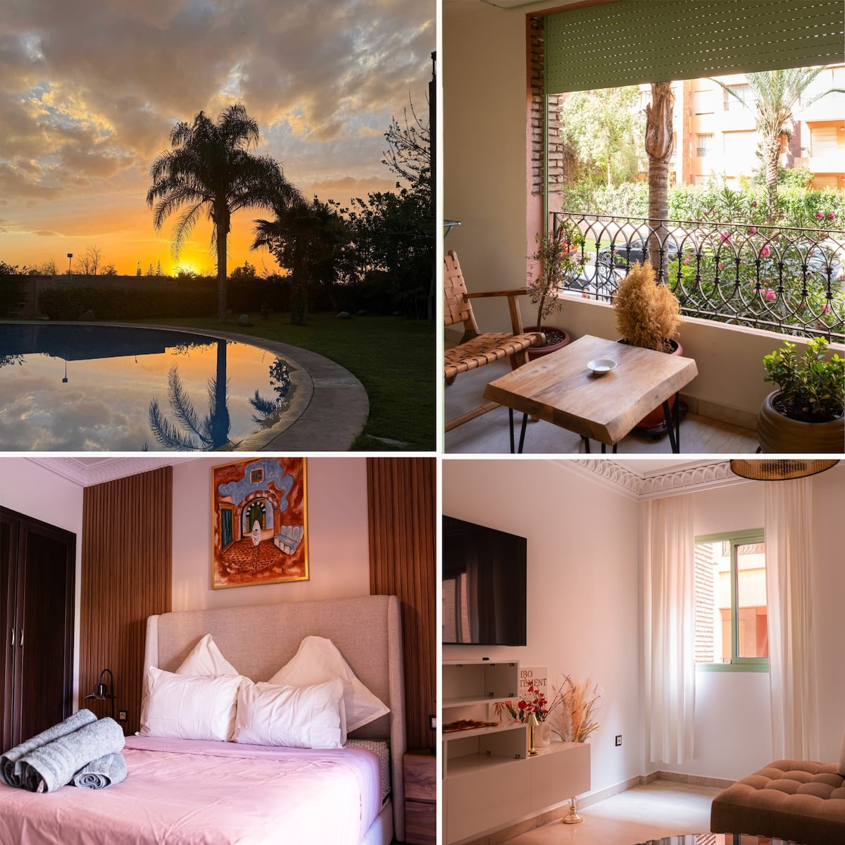 Appartement de standing 🏡, lumineux et raffiné, idéalement situé au cœur de Marrakech 🌴, à moins de 10 min de la médina, des restaurants, de la gare et de l’aéroport. Grand salon accueillant, deux chambres élégantes 🛏️, terrasse spacieuse ☀️, climatisation, wifi rapide et cuisine équipée 🍽️. Vue sur l’Atlas au lever du soleil 🌄. Vivez un séjour inoubliable entre détente et confort authentique ✨. Réservez dès maintenant et vivez l’expérience Marrakech !
