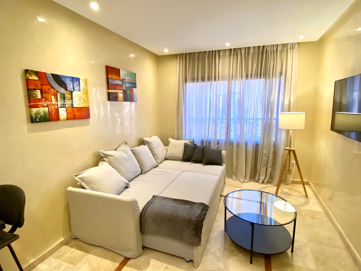 Unveil modern luxury in this stylish, fully-equipped flat in the heart of Marrakech's Gueliz district. Lightning-fast internet makes it ideal for business and leisure travelers. Walk to the railway station and Royal Theatre, and enjoy proximity to Carré Eden shopping. A quick taxi ride to Jamaa el Fna and major attractions. Please note: Unmarried Moroccan couples and guests are not accepted. Book now for an unforgettable Marrakech experience!