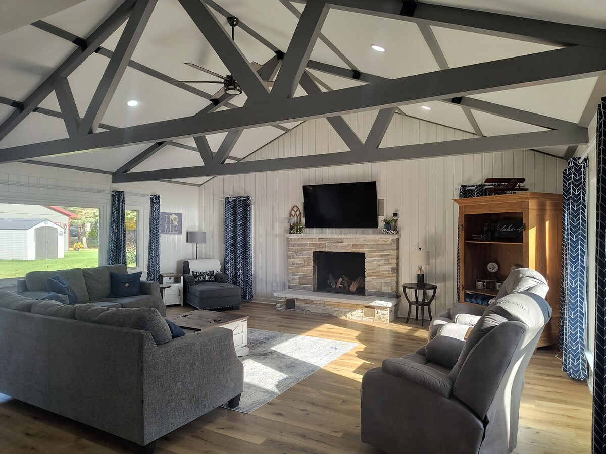 Relax at Sunset Oasis, where stunning lake views and sunsets set the tone for your stay. Sip coffee in the chef’s kitchen, paddle out in kayaks, grill lunch, and dine lakeside. In the evening, cozy up by the fireplace or gather around the firepit under the stars. Stream your favorite shows on the smart TV or explore nearby downtowns just minutes away. This stylish, updated luxury lake house is the perfect escape to unwind, reconnect, and create unforgettable memories.