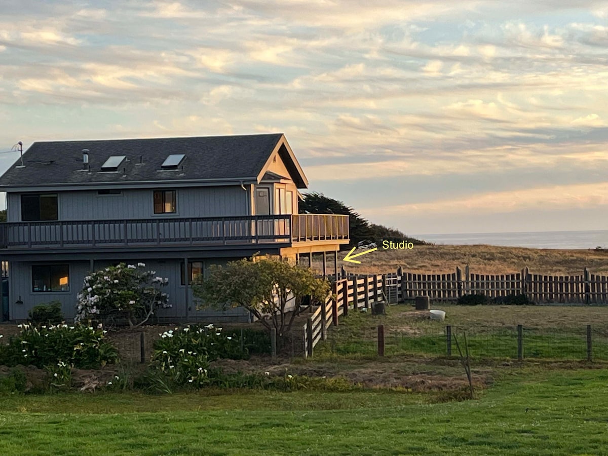 This beautiful 600 sq ft ocean view guest home is one min walk from Caspar trail 15 min walk to Lighthouse & Private Beach. Ocean views from King bed. Gas fireplace, Wi-Fi, small kitchenette, mini refrigerator, gas grill, electric cooktop, microwave, Keurig & French press coffee. Ocean view from Jacuzzi. Additional $25 for EV - $25 a day per pet up to 2 pets. We have list for wine, flowers for your special occasion. No Stove.