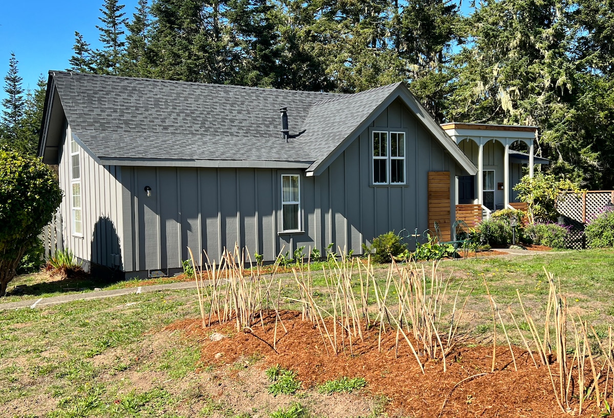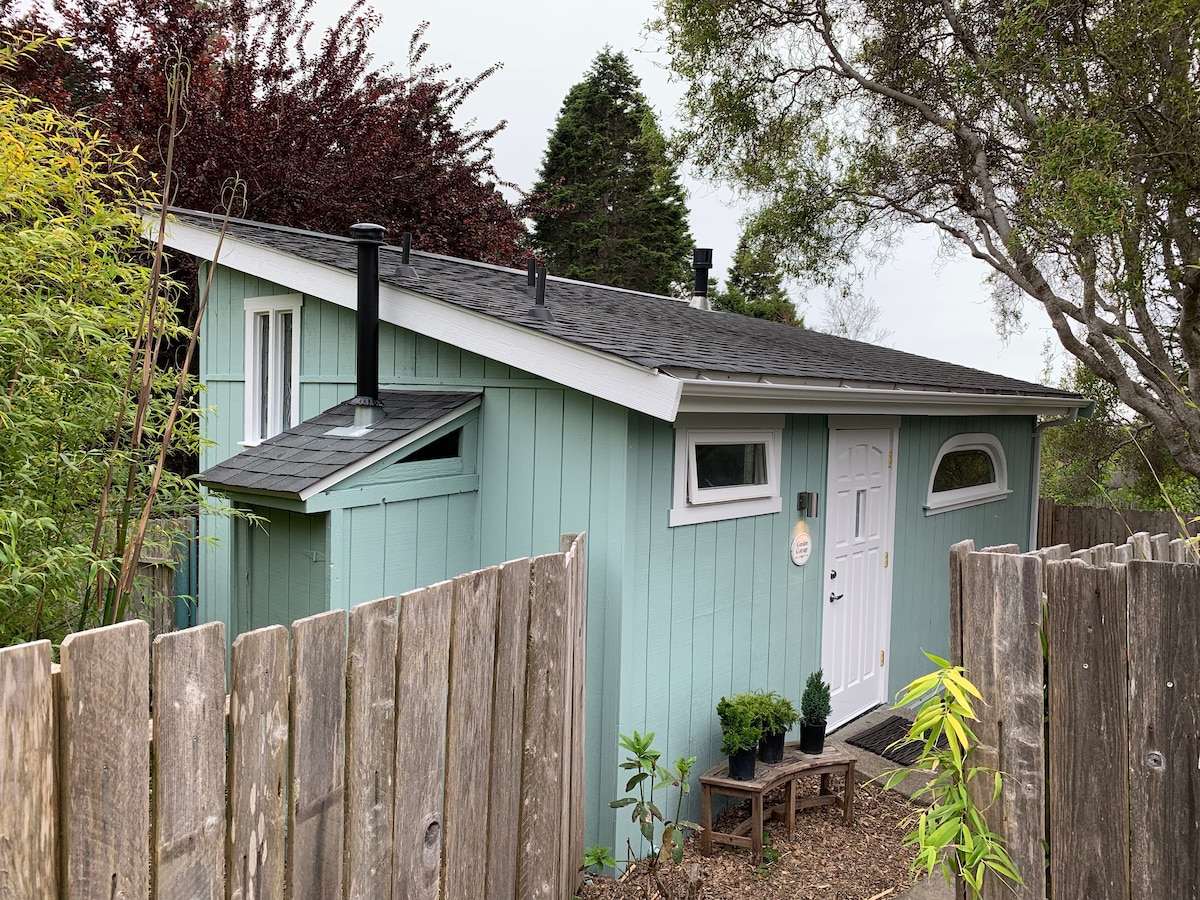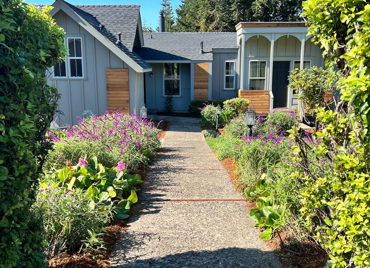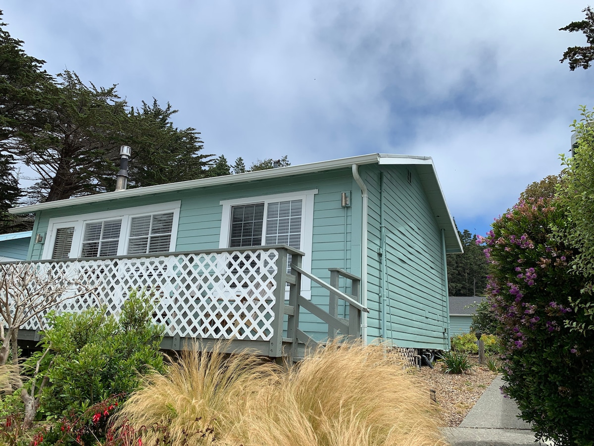 You won't want to leave this charming, one-of-a-kind place. It's a private room (no kitchen/breakfast or hot tub) with a separate entrance in a well-established Inn. ONE queen bed only, free WiFi, wood-burning fireplace with wood provided, private bathroom (shower stall), seating/eating area, mini-fridge, microwave, mini-Keurig machine, private deck facing the Pacific Ocean. Lose yourself in Nature. No TV/phone. No kitchen. Just you & the waves. Maybe a whale or 2.