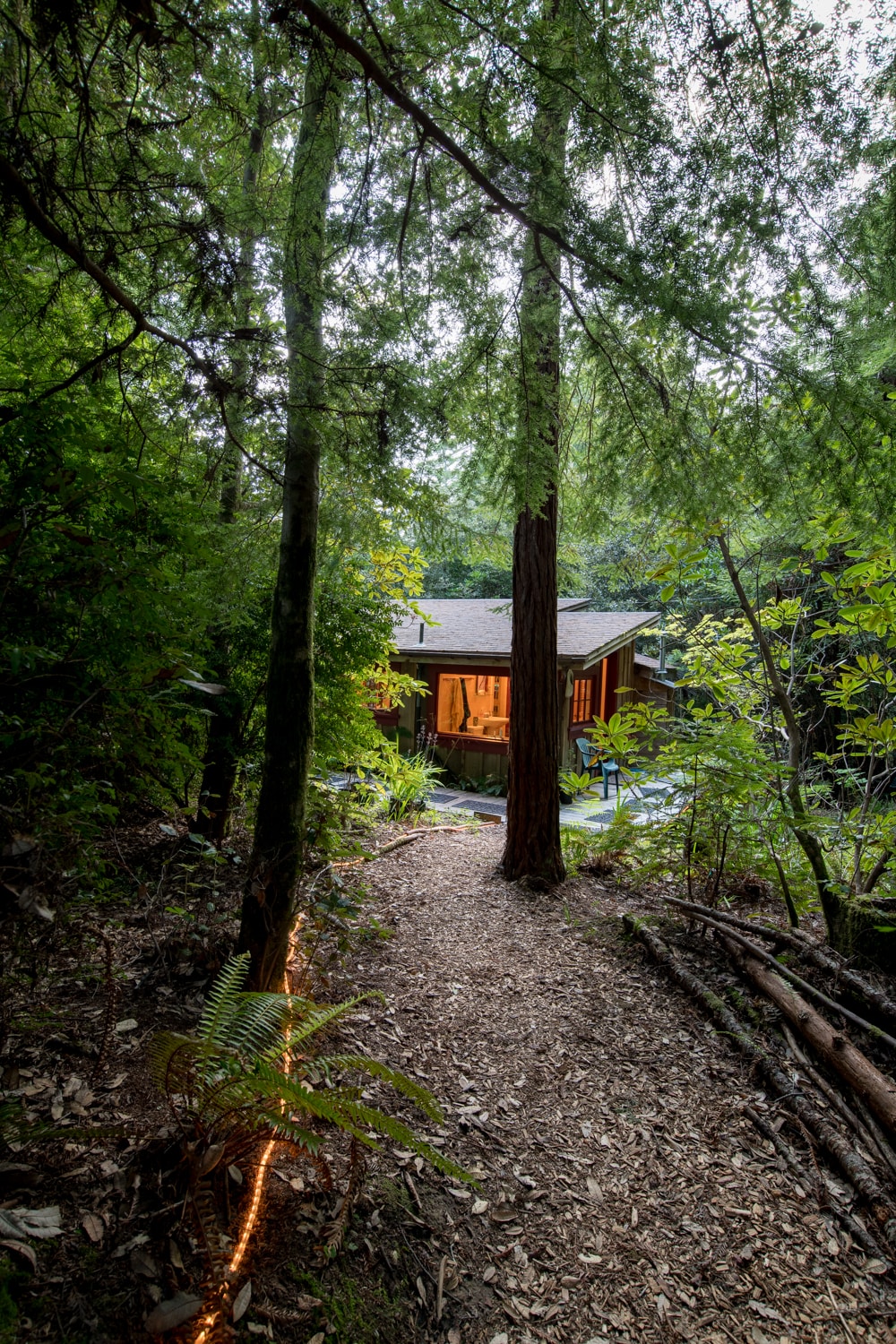 宁静的门多西诺乡村小屋,四周环绕着红杉