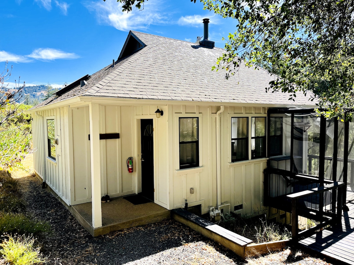 Our open plan cottage studio has lovely views of our walnut orchard, historic barn and fields. Enjoy sunset over the neighboring vineyards from your private deck. We are a mile down the road from a lovely State park, that is if you ever want to leave our tranquil little farm. Also nearby are wineries, hiking trails up a dormant volcano, and California's largest and oldest lake. Our farm is featured in the September 2022 issue of Sunset magazine. Check it out!
