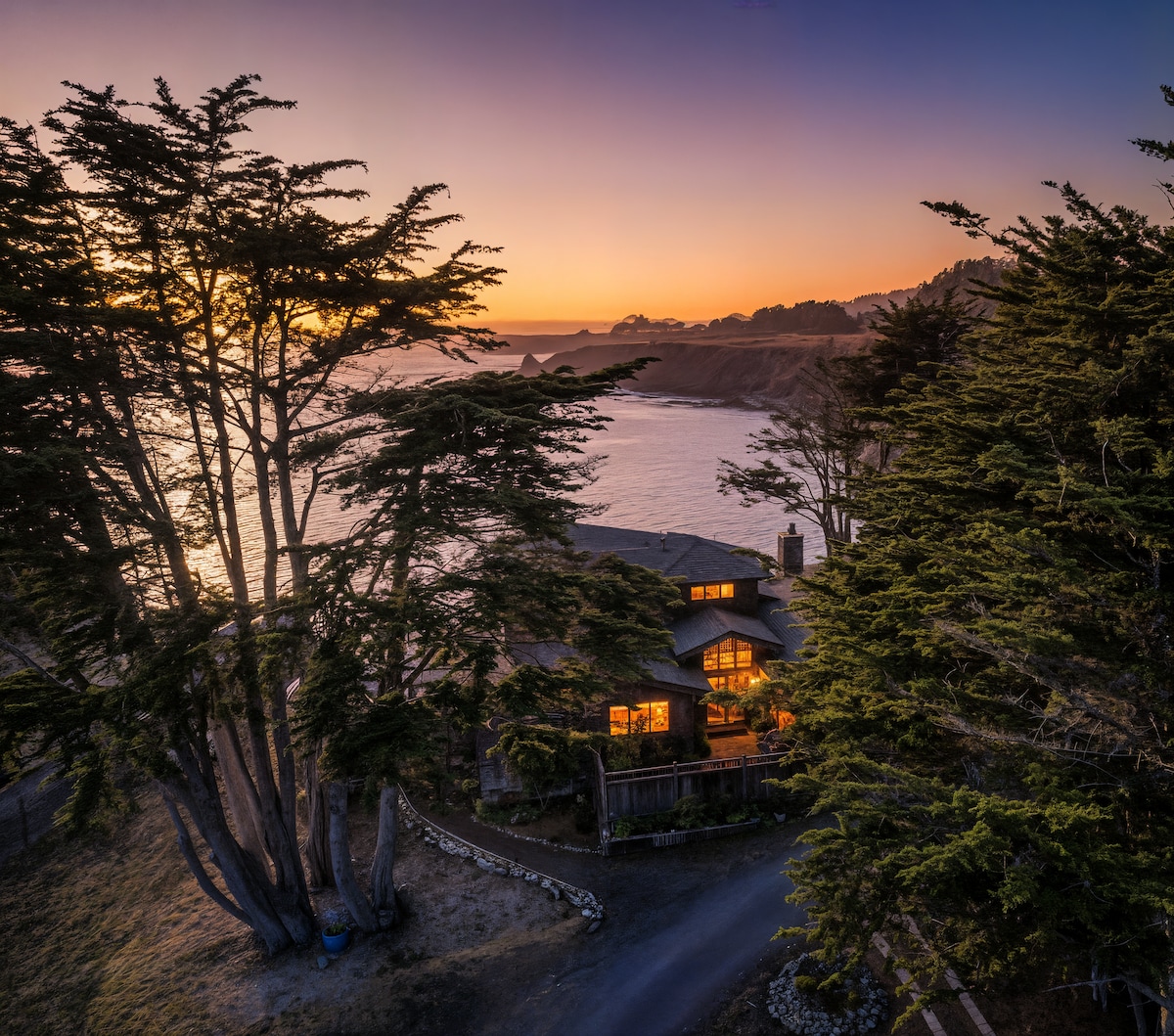 Lux Mendocino度假屋:海景、热水浴缸、红木