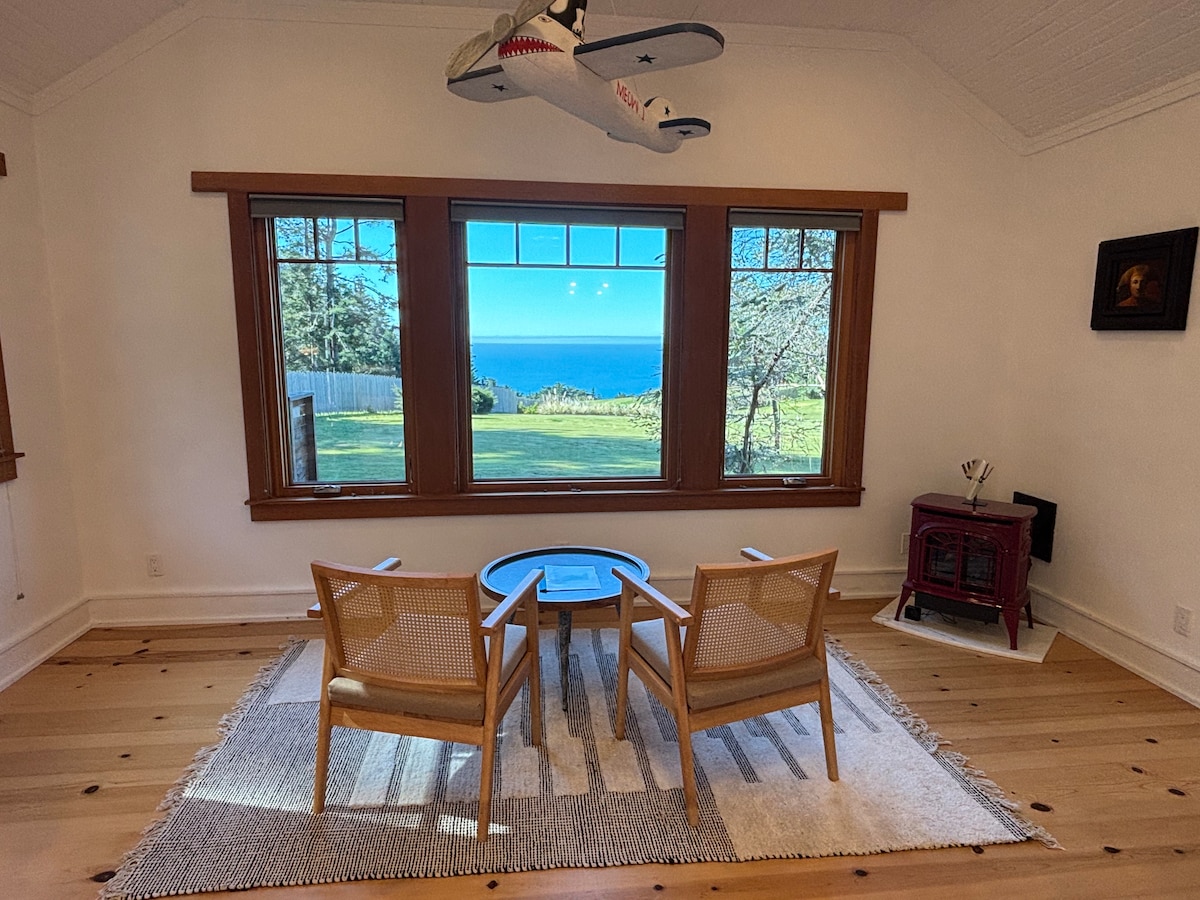 This is a brand new 400 sq ft guest home. A peaceful place with stunning oceanfront views from a 6-acre paradise. Watch whales and bald eagles from your bed. Please note there is no TV. We offer the option of champagne, flowers, balloons etc - ask for our price list. Patio is fenced for privacy. No pets allowed. This guest suite is its own separate independent building and close to the main home. It's one floor but small step up into bathroom. New jacuzzi. Bring your own firewood.